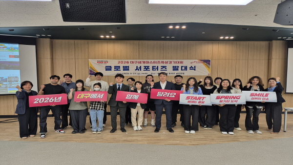 진기훈 사무총장은 “외국인 대학생 서포터즈의 창의적이고 참신한 아이디어와 온·오프라인의 활발한 활동을 통해 2026 대구세계마스터즈육상경기대회는 물론 대구의 문화와 관광자원을 세계에 소개할 수 있기를 기대한다”고 말했다.