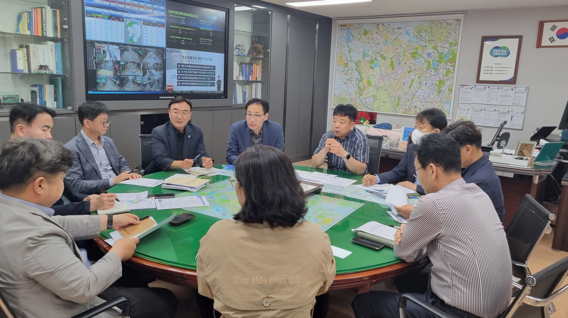 김현수 수원시 제1부시장을 단장으로 하는 TF(태스크포스)팀은 기획조정실장, 경제정책국장 등 수원시 담당 부서 관계자, 수원시정연구원 관계자 등 총 15명으로 구성됐다. 지난 23일 제1부시장 집무실에서 첫 회의를 열었다.