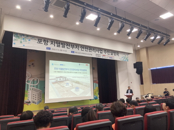 NSP통신-포항시는 내달 4일 오후 2시 포은흥해도서관 1층 음악강당에서 지열발전부지 안전관리사업 현황과 향후 계획과 관련한 주민설명회가 열린다고 밝혔다. 지난 2023년 설명회 모습 (사진 = 포항시)