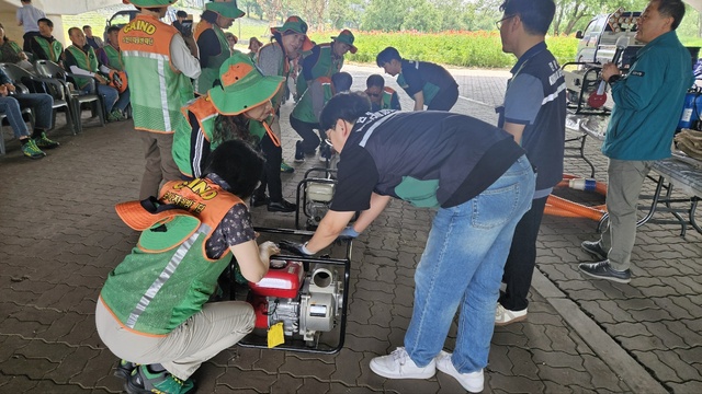 참석자들은 워터댐, 모래주머니, 수중펌프, 소형 발전기 등의 사용법을 익혔다.