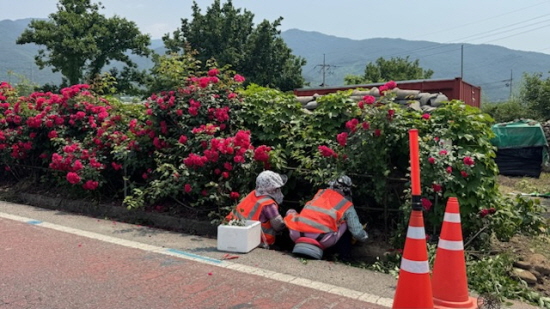 지난 4월에는 국도 19호선에서 화엄가든까지 구간의 잡풀과 넝쿨을 정비하고 홍가시나무를 식재해 도로 경관을 개선했다.