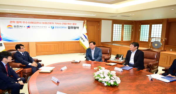 이번 협약은 김천시가 농업 근로자 기숙사 건립 공사 추진 과정에서 교육부 산하 한국사학진흥재단의 우수한 관학 협력 사례로 선정됨에 따라 타 지자체 확산모델로 홍보하기 위해 각 기관 협의를 거쳐 추진됐다.