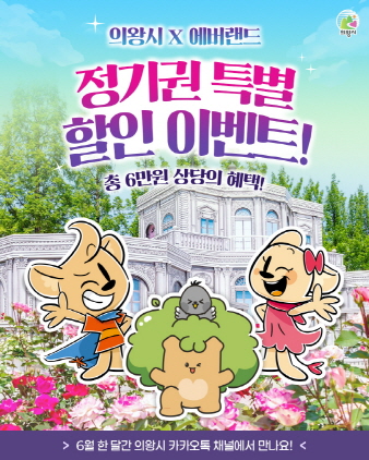 의왕시 카카오톡 채널을 친구 추가한 시민은 에버랜드 정기권(정상가 29만원) 구매 시 총 6만원 상당의 할인 혜택을 받을 수 있다.