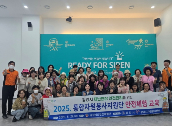 (전남=NSP통신) 김성철 기자 = 광양시는 지난 29일 경상남도 합천군에 위치한 경상남도안전체험관에서 ‘2025년 통합자원봉사지원단 안전체험 교육’을 실시했다고 밝혔다.