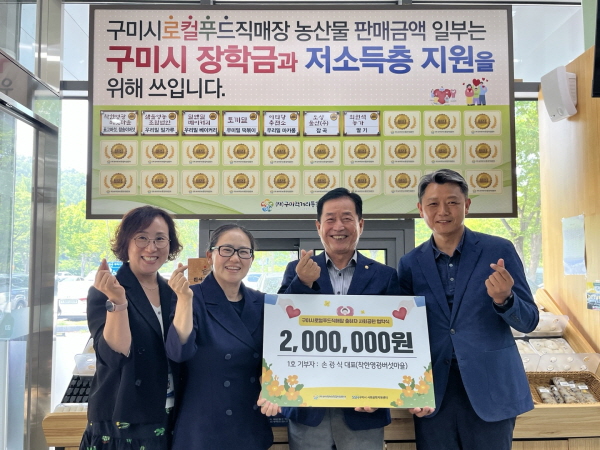 손광식 대표(구미시로컬푸드직매장 출하자협의회장)는 “그동안 지역 소비자들의 큰 사랑 덕분에 농업을 지속할 수 있었고 이에 보답하고자 기부를 결심했으며 앞으로도 시민들에게 사랑받는 착한 농업을 실천하겠다”고 소감을 밝혔다.