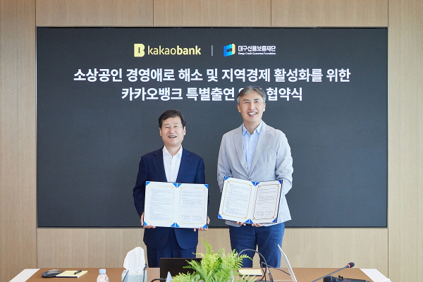 대구신보와 카카오뱅크는 2일 카카오뱅크(323410) 판교 본사에서 ‘대구광역시 상생 금융지원 업무협약’을 체결했다.
