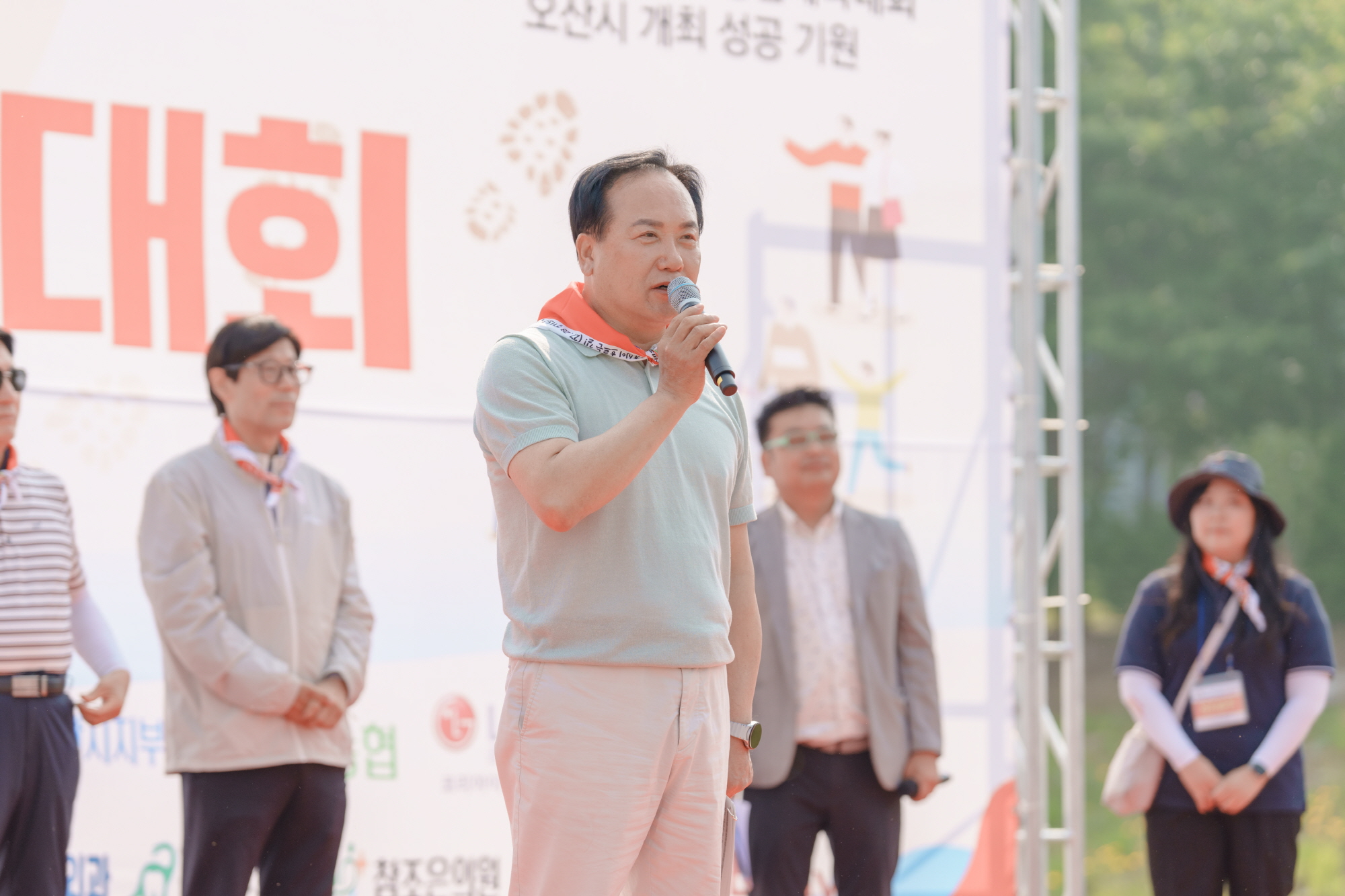 NSP통신-1일 이권재 오산시장이 걷기대회에서 인사말을 하는 모습. (사진 = 오산시)