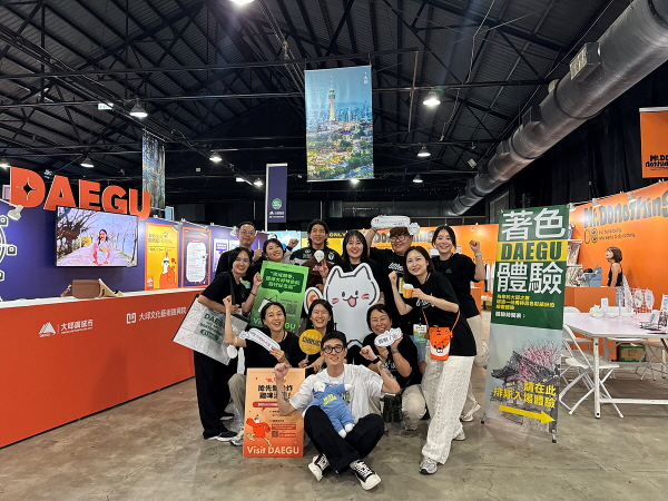 또한 문예진흥원 운영 대구관광 홍보관에는 대구 인바운드 스타여행사 ‘플라이투게더’와 대만 인기 캐릭터 ‘미스터두낫띵’ 라이선스 보유 기업 ‘제이샤’가 함께해 통합 홍보관을 구성해 현지 관람객의 눈길을 끌었다.