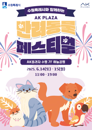 (경기=NSP통신) 조현철 기자 = 경기 수원시(시장 이재준)와 AK플라자 수원점은 14일과 15일 2일간 AK플라자 수원점 7층 하늘공원에서 반려동물과 보호자가 함께하는 ‘반려동물 페스티벌’을 연다.