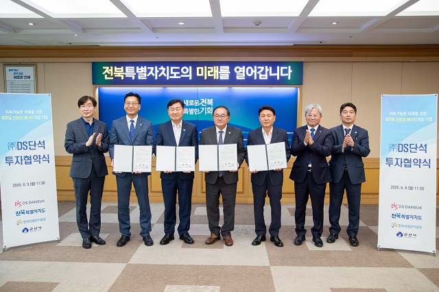 협약식에는 강임준 군산시장을 비롯해 김관영 전북도지사, 문문철 한국산업단지공단 전북본부장, 한승욱·김종완 디에스단석 공동대표가 참석했다.