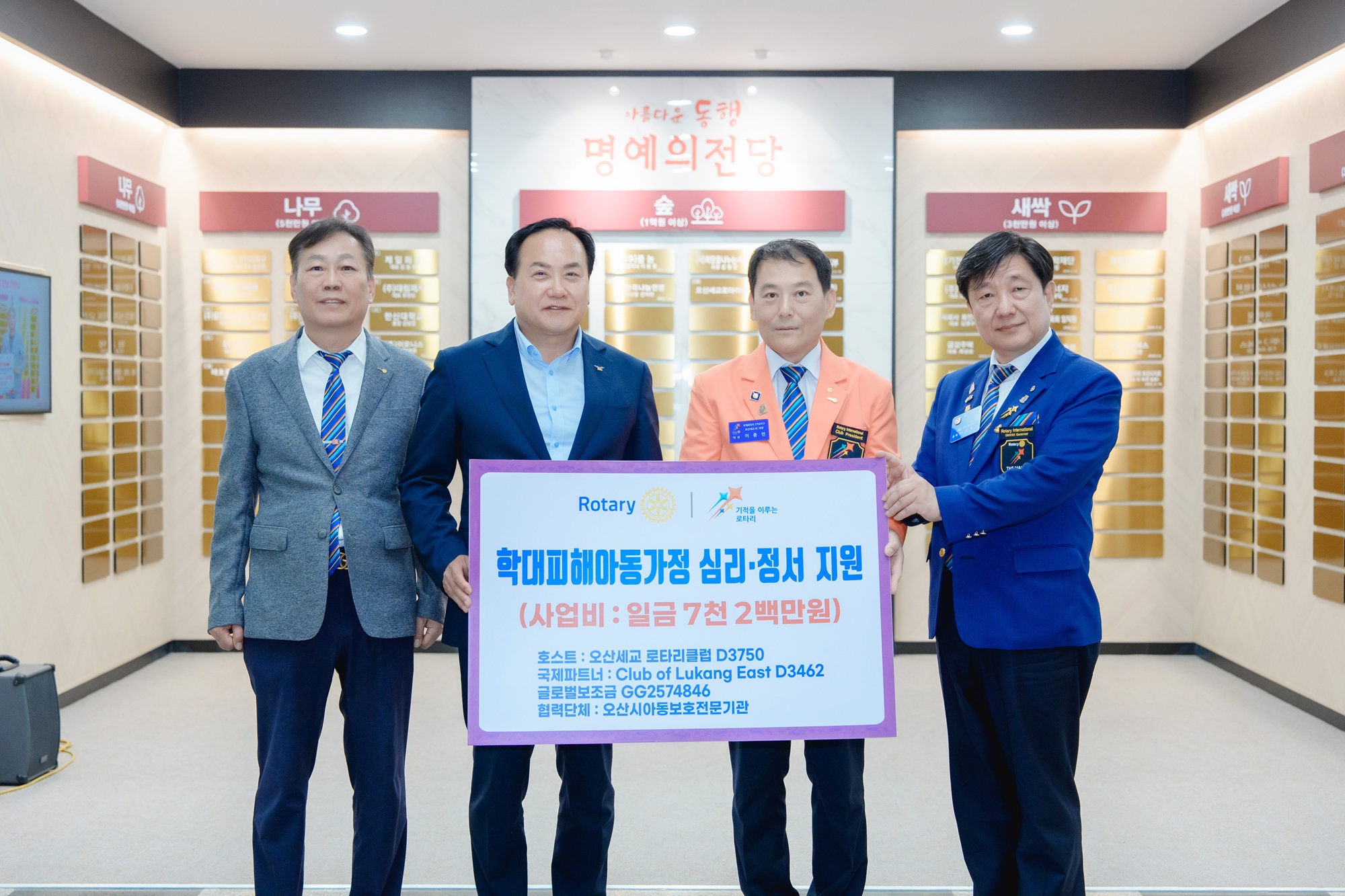 이권재 오산시장은 “로타리클럽의 지속적인 후원으로 학대피해아동의 건강한 성장을 지원할 수 있었다”며 감사를 전했다.