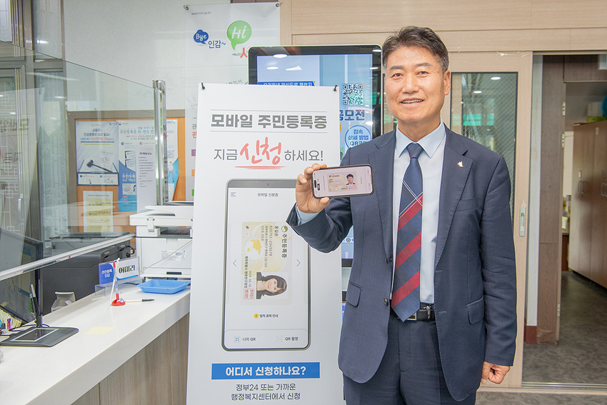 이날 함명준 군수는 모바일 주민등록증 발급 절차를 직접 확인하며 이를 통해 주민들이 더욱 신속하고 편리하게 행정서비스를 이용할 수 있도록 장려했다.