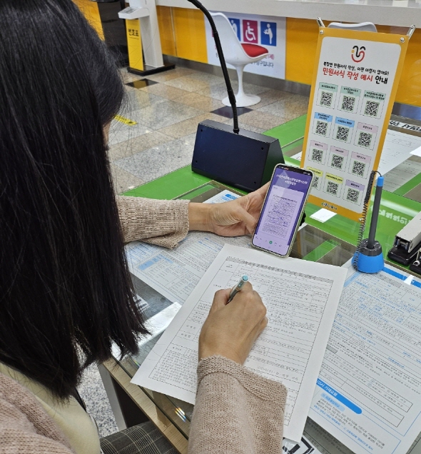 (경북=NSP통신) 김오현 기자 = 안동시(시장 권기창)는 시민의 민원서식 작성 부담을 덜고 행정서비스 이용 편의를 높이기 위해 QR코드를 활용한 민원서식 작성예시 제공 서비스를 시청 민원실과 읍면동 행정복지센터에 전면 도입했다.