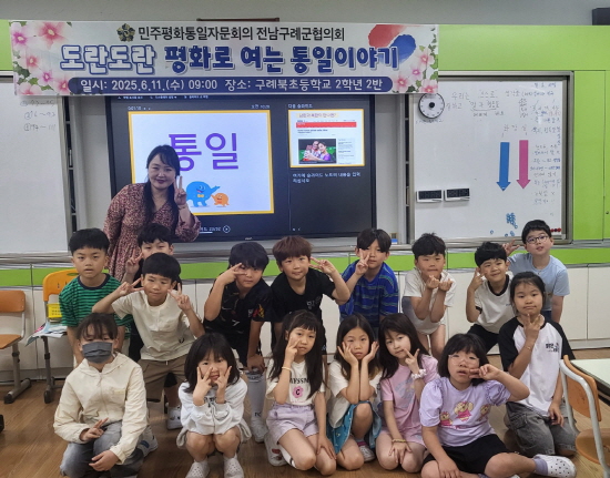(전남=NSP통신) 김성철 기자 = 민주평화통일자문회의 구례군협의회(회장 최덕로)는 구례북초등학교 2학년 교실에서 학생 및 교사 등 50여 명이 참석한 가운데 ‘도란도란 평화로 여는 통일이야기’를 개최했다.
