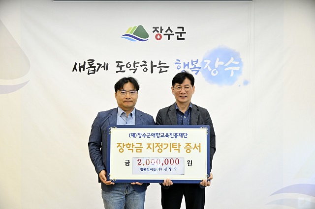 이번 기탁은 김 부사장이 오랜 시간 간직해온 고향에 대한 애정과 지역사회에 대한 감사의 마음을 담아 이뤄진 것으로 장수의 미래를 이끌어갈 학생들에게 따뜻한 격려와 희망이 될 것으로 기대된다.