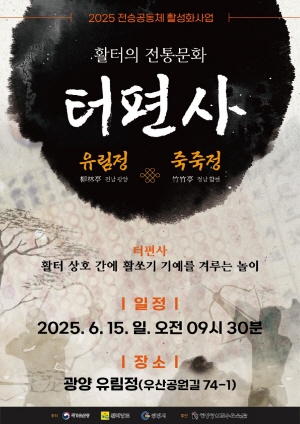 ‘터편사’는 지역 활터(사정, 射亭) 간 활쏘기 기예를 겨루며 친목을 다졌던 전통문화로, 이번 행사는 이를 현대적으로 계승·재현하는 의미를 담고 있다. 올해 ‘터편사’는 광양 유림정, 백운정, 마로정에서 총 세 차례 개최될 예정이며 첫 일정으로 유림정에서 합천 죽죽정을 초청해 오는 15일 첫 대회를 연다.