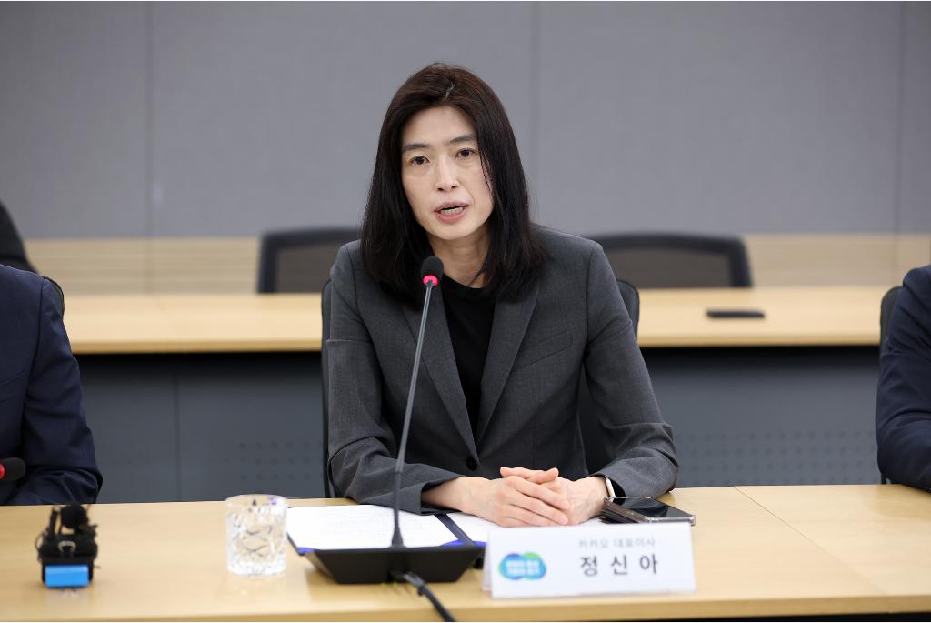 NSP통신-카카오, AI기반 디지털 허브 건립 투자협약에서 정신아 카카오 대표가 인사말을 하고 있다. (사진 = 경기도)