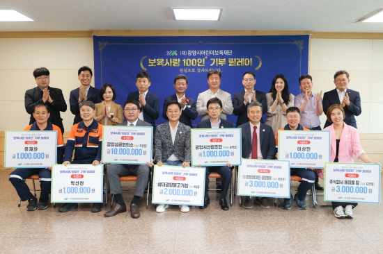 이광용 재단 이사장은 “기부 릴레이에 깊은 관심과 따뜻한 사랑을 보내주신 기부자 여러분께 진심으로 감사드린다”며 “기탁해주신 소중한 뜻은 광양시 아이들을 위한 다양한 보육사업에 의미 있게 활용할 계획이다”고 밝혔다.