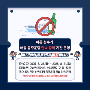 (경북=NSP통신) 조인호 기자 = 포항해양경찰서(서장 이근안)는 여름 성수기(6~8월)에 대비해 ‘해상 음주운항 단속 강화 기간’을 운영한다고 밝혔다.