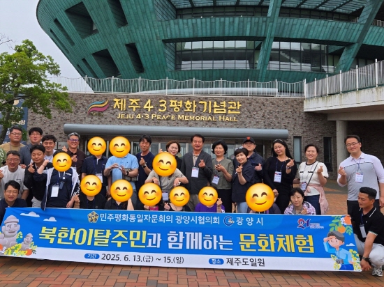 (전남=NSP통신) 김성철 기자 = 광양시와 민주평화통일자문회의 전남광양시협의회(회장 남기호)는 지난 13일~15일까지 2박 3일간 관내에 거주하는 북한이탈주민들과 함께 제주특별자치도에서 문화체험 활동을 진행했다고 밝혔다.