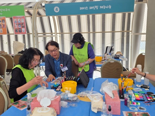 또 행사장 내 부대행사로 열린 자원봉사 박람회의 용인시자원봉사센터 페이스페인팅 봉사단 부스를 방문해 참석자들을 격려했다.