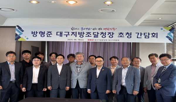 (경북=NSP통신) 김대원 기자 = 중소기업중앙회 대구지역본부(지역회장 성태근)는 대구 중소기업의 판로 활성화를 위해 18일 방형준 대구지방조달청장 초청 간담회를 개최했다.