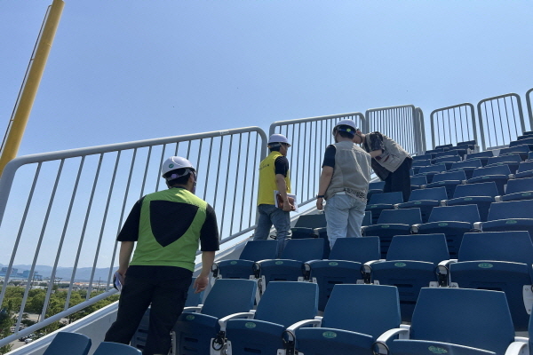 야구장 안전점검 매뉴얼을 기준으로 전광판, 광고판, 음향·통신기기, 외장 마감재, 조명설비 등 주요 부착물의 정착부 상태 및 파손 여부 등을 중점적으로 확인했으며 특히 관람객 통행이 빈번한 구간은 낙하물 위험구역으로 설정하여 위험도 평가도 함께 수행했다.