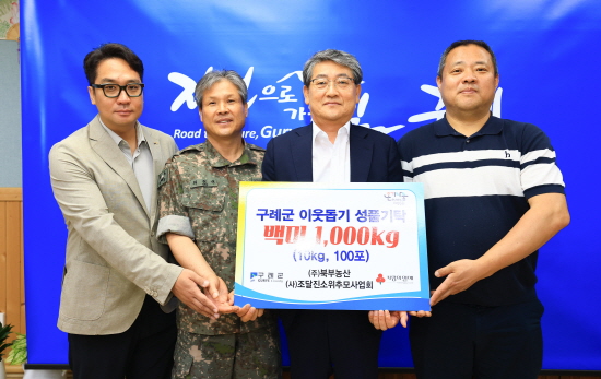 (전남=NSP통신) 김성철 기자 = 구례군은 지난 19일 북부농산(대표 서현승)과 조달진소위추모사업회(이사장 최정식)로부터 쌀 10kg 100포, 총 1000kg의 후원 물품을 기탁받았다고 밝혔다.