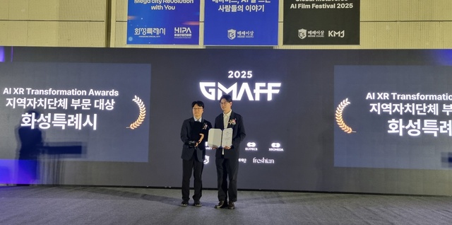 (경기=NSP통신) 조현철 기자 = 경기 화성시(시장 정명근)가 20일 서울 코엑스에서 열린 코리아메타버스저널(KMJ) 주관 ‘2025 AI XR Transformation Award’ 시상식에서 지역자치단체 부문 대상을 수상하며 디지털 행정 선도 도시로서의 위상을 다시 한번 입증했다.