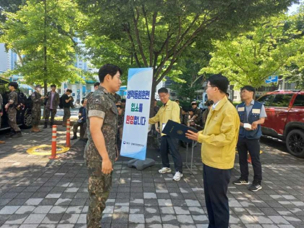 (경북=NSP통신) 김대원 기자 = 대구경북지방병무청(청장 오경준)은 지난 23일 금년도 동원훈련집단수송 집결지(대구복합스포츠타운)에서 안전수송과 관련된 사항을 점검하고 예비군들을 격려했다.