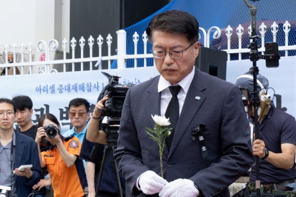 (경기=NSP통신) 김병관 기자 = 경기도는 24일 화성시 서신면 전지공장 화재 사고현장에서 열린 1주기 현장추모제에 참석해 희생자를 추모하고 유가족을 위로했다.
