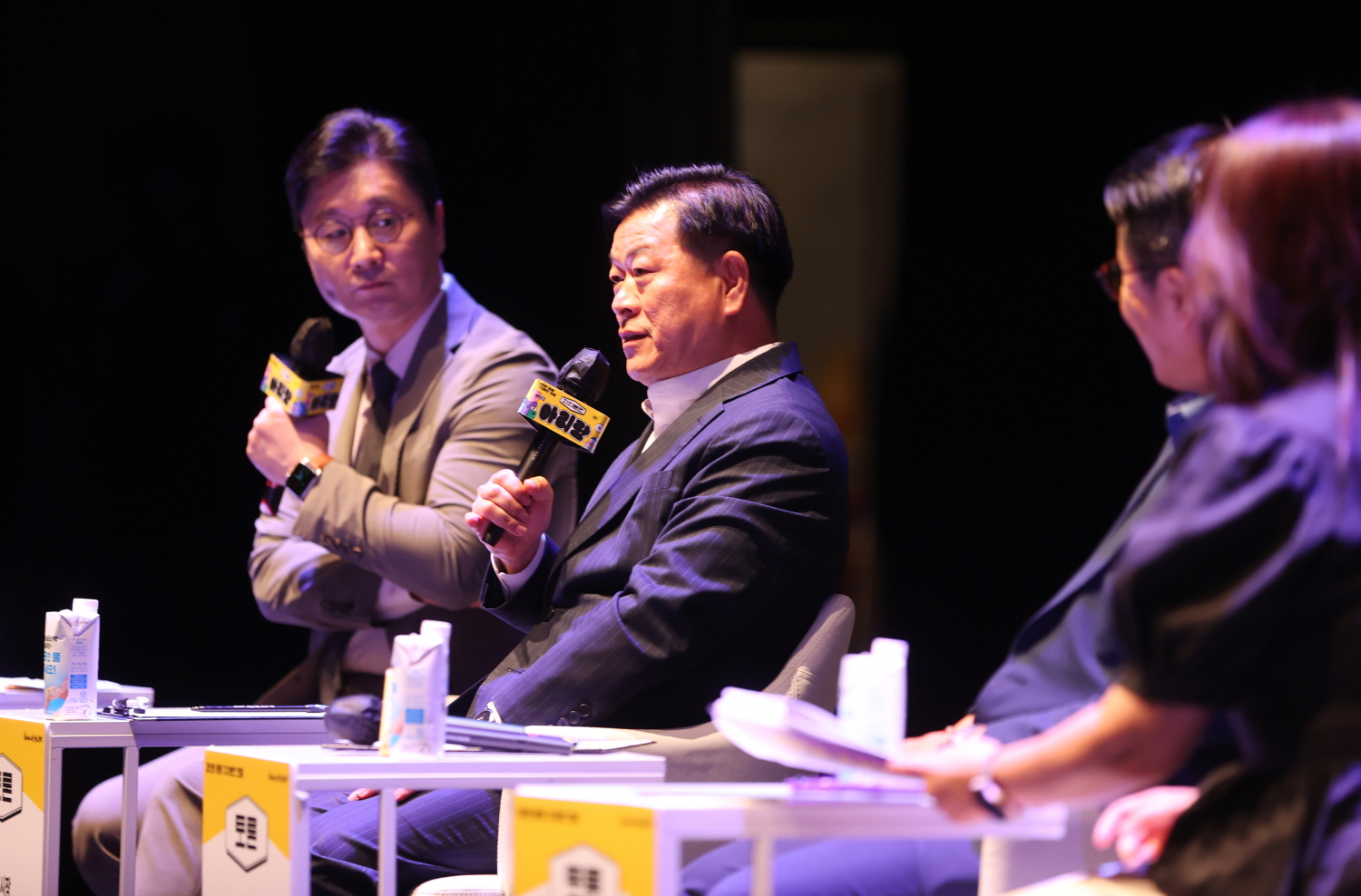 박승원 광명시장(왼쪽 두 번째)이 24일 광명극장에서 열린 제6회 자치분권 포럼 ‘자치분권 아리랑’ 토크콘서트에서 발언하고 있다. (사진 = 광명시)
