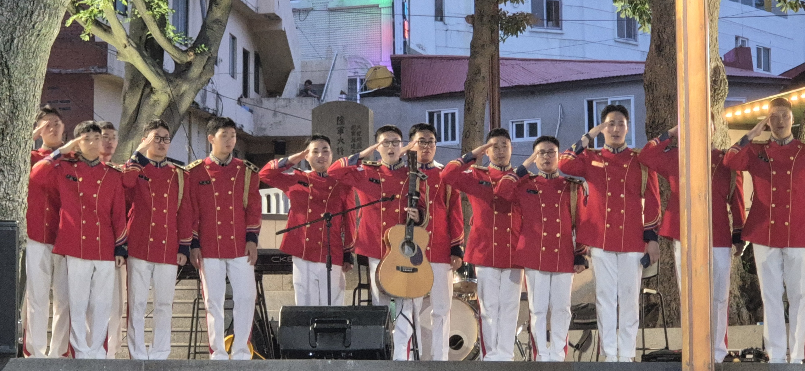 육군사관학교 군악대원들이 저동 관해정에서 공연에 앞서 인사를 하고 있다. (사진 = 울릉군청 제공)
