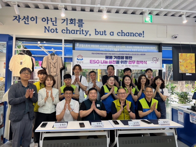 이를 위해 성남시는 24일 오후 2시 야탑동 소재 굿윌스토어(장애인 직업재활시설) 1층에서 노숙인종합지원센터, 안나의집 등 5곳 시설장과 ‘ESG 나눔 실천-기증 의류 선순환 사업 추진에 관한 업무 협약’을 체결했다.