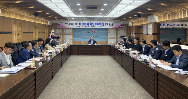 (경북=NSP통신) 김대원 기자 = 영천시(시장 최기문)는 26일 시청 영상회의실에서 ‘2025년 제1회 지방규제혁신 TF 회의’를 개최하고 시민과 기업이 체감할 수 있는 규제개선 과제 15건을 논의하며 민생 중심 규제혁신에 속도를 내고 있다.