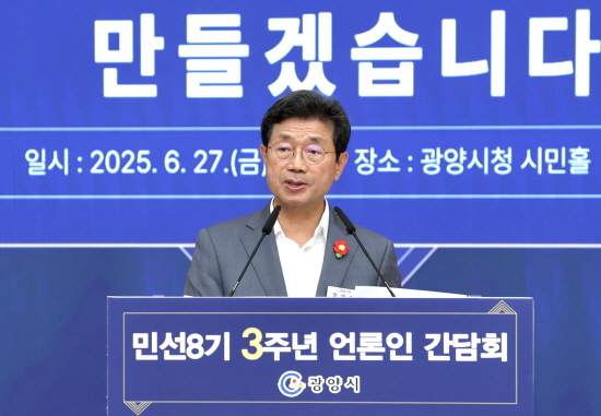 (전남=NSP통신) 김성철 기자 = 광양시는 시청 대회의실에서 ‘민선 8기 취임 3주년 기자간담회’를 열고 지난 3년간 시정 성과를 돌아보며 향후 1년간의 시정 운영 방향을 제시했다.