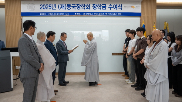 (경북=NSP통신) 조인호 기자 = 동국대학교 총동창회는 지난 26일 오후 3시 동국대 WISE캠퍼스 백주년기념관 5층 세미나실에서 2025학년도 동국장학회 장학금 수여식을 가졌다.