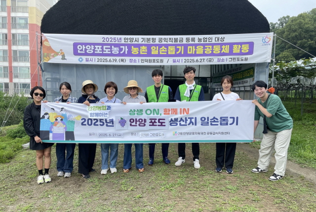 이번 활동은 인력 부족으로 어려움을 겪고 있는 농가를 지원하기 위해 센터, 안양농협, 공익 직불금 등록대상자 40여 명이 함께 힘을 모아 진행했다. 이날 봉사에 참여한 40여 명은 포도 순따기, 포도봉지 씌우기 등을 통해 농가의 일손을 도왔다.