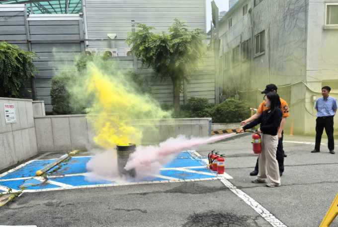 소방안전관리자의 지시에 따라 화재 통보, 대피 유도, 화재 진압 등 전 직원이 참여했으며 소화기 사용 실습 등을 통해 훈련의 실효성을 높였다.