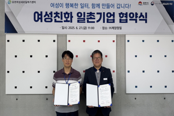 (경북=NSP통신) 김대원 기자 = 김천여성새로일하기센터는 지난 27일 계양정밀에서 지역 여성의 취업 확대와 안정적인 고용 환경 조성을 위해 ‘여성 친화 일촌 기업 협약’을 체결했다.