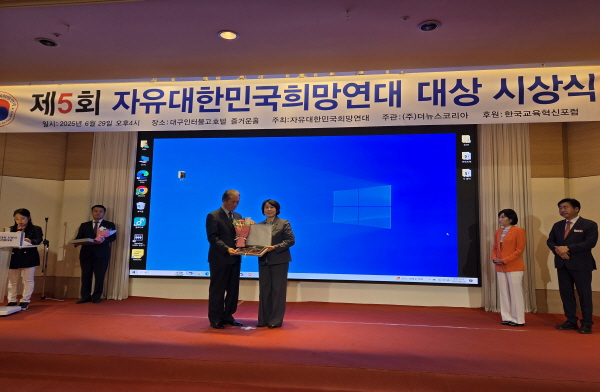(경북=NSP통신) 김대원 기자 = 대구 수성구의회 최현숙 의원(문화복지위원회)이 지난달 29일 제5회 자유대한민국희망연대 대상 시상식에서 지방의정대상을 수상했다.