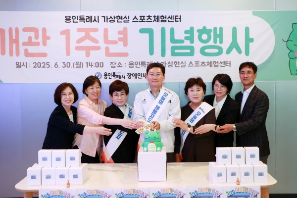 (경기=NSP통신) 김병관 기자 = 경기 용인특례시(시장 이상일)는 지난달 30일 오후 처인구 역북동에 위치한 장애인·장애학생 중심의 ‘가상현실 스포츠체험센터’에서 개관 1주년 기념행사를 열었다.