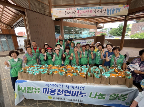 (경북=NSP통신) 김오현 기자 = 봉화군 새마을부녀회는 지난 2일 봉화상설시장에서 ‘EM 함유 천연미용비누 나눔 캠페인’을 열고 주민들과 함께 친환경 실천에 나섰다.