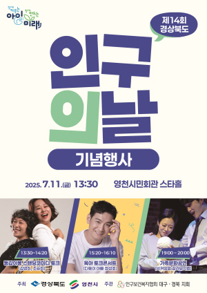 (경북=NSP통신) 김대원 기자 = 영천시는 오는 11일 법정기념일인 ‘인구의 날’을 맞아 시민회관에서 ‘2025년 경상북도 인구의 날 기념행사’를 개최한다.
