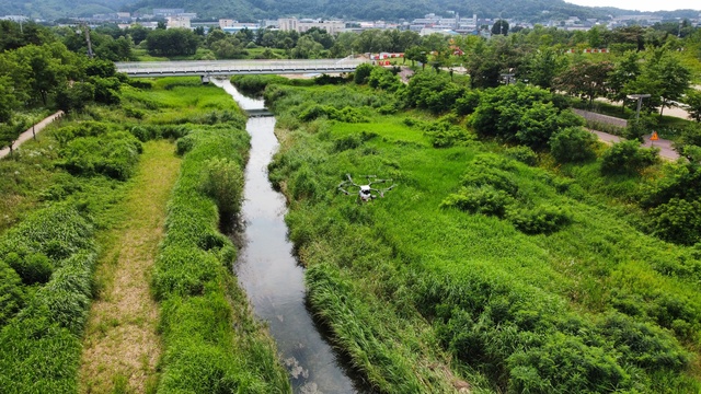 드론 방제에는 수서생물에 영향을 주지 않는 친환경 약제가 사용됐으며 시는 모기의 생활사에 따라 2주 후 추가 드론 방제를 실시할 예정이다.