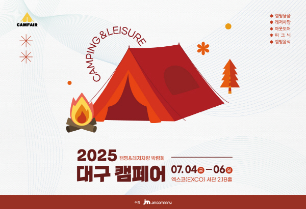 (경북=NSP통신) 조인호 기자 = 감성 캠핑 전문 박람회 ‘2025 대구 캠핑&레저차량박람회 (대구 캠페어)' 가 4일부터 오는 6일까지 대구 엑스코에서 열린다. 이번 행사는 제이엠컴퍼니가 주최하며 캠핑·레저산업의 최신 흐름과 상품을 한눈에 조망할 수 있다.