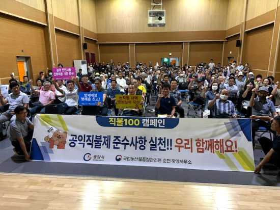 (전남=NSP통신) 김성철 기자 = 광양시는 국립농산물품질관리원 순천·광양사무소와 함께 7월~오는 9월 30일까지 올해 기본형 공익직불금을 신청한 농업인 7613명을 대상으로 공익직불제 준수사항 이행 여부에 대한 현장 점검을 실시한다고 밝혔다.