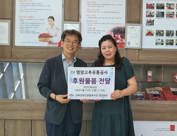 (경북=NSP통신) 조인호 기자 = 영양고추유통공사(사장 황찬영)는 경북장애인종합복지관 영양분관(분관장 이희자)을 통해 지역 내 저소득 장애인 가정을 위한 하계 계절용품인 300만원 상당의 냉감이불 40채와 선풍기 10여대를 지원했다.