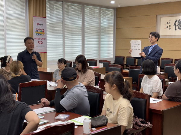 연수에서는 자녀가 보이는 기질적 특징을 사례로 분석하고 부모로서 부정적인 감정을 다루는 방법과 아이의 자존감을 높이는 대화법을 함께 체험하는 활동이 이어졌다.