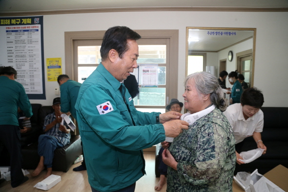 이어 권 시장은 남선면 신석리에 위치한 경로당과 선진이동주택을 잇달아 방문해 어르신과 주민들의 건강 상태를 살피고 목걸이형 선풍기를 전달하며 폭염 대비 요령을 안내했다.